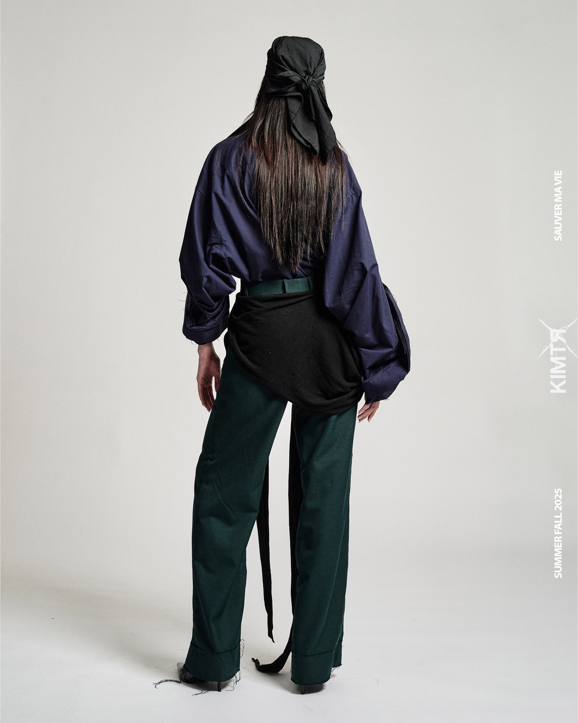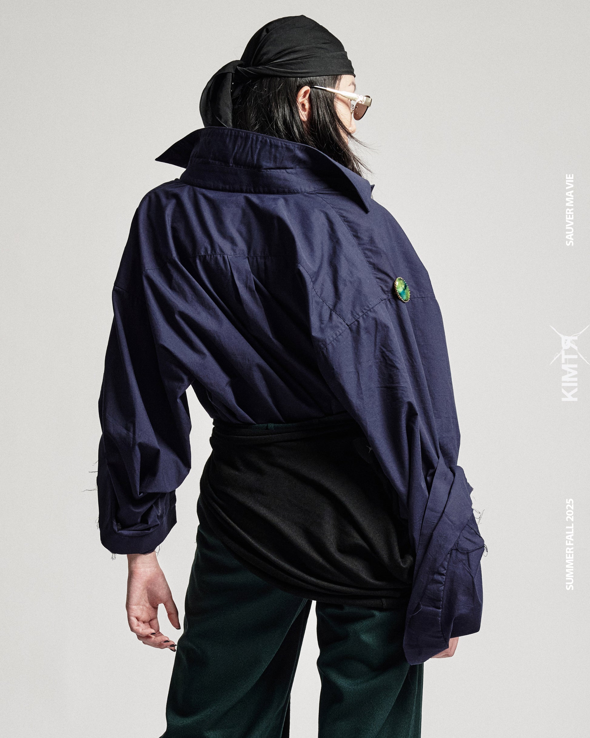 - Comfortable relax fit with a twist in garment volume by englarging and elongating